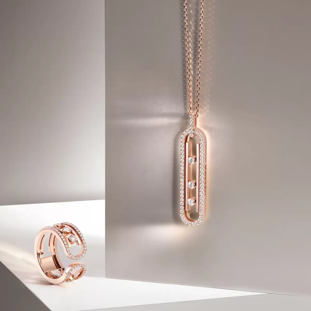 View collectionThe signature collection of Maison Messika, Move Classic represents a modern and romantic symbol of love yesterday, today and tomorrow, which can be worn everyday in the form of three diamonds subtly moving following body motions.