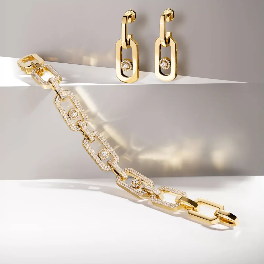 View collectionA perfect balance between iconic and fashionable pieces, Move Link reinterprets the bracelet in rock and both women’s and man ways. Volume, thickness, and Move’s codes lend themselves wonderfully to this stylistic exercise to reveal new pieces with a bold look and graphic silhouettes.