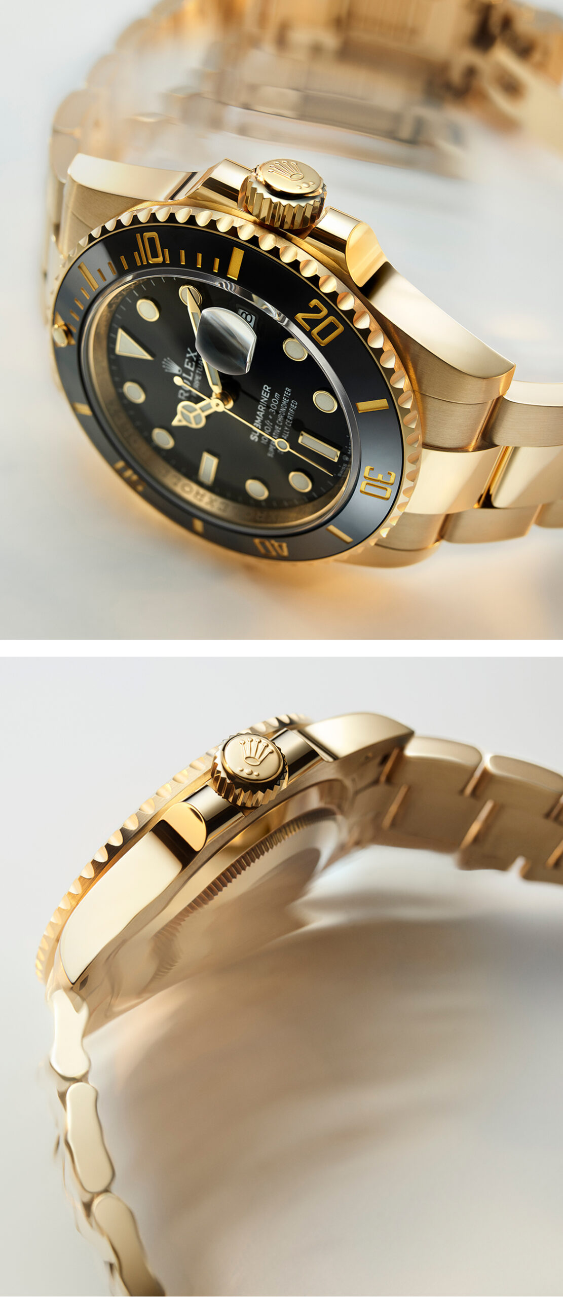 Like all Rolex timepieces, watches in the Submariner range are covered by the Superlative Chronometer certification. This designation testifies that every watch leaving the brand’s workshops has successfully undergone a series of tests conducted by Rolex in its own laboratories, according to its own criteria. The Superlative Chronometer status is symbolized by a green seal and is coupled with an international five-year guarantee.