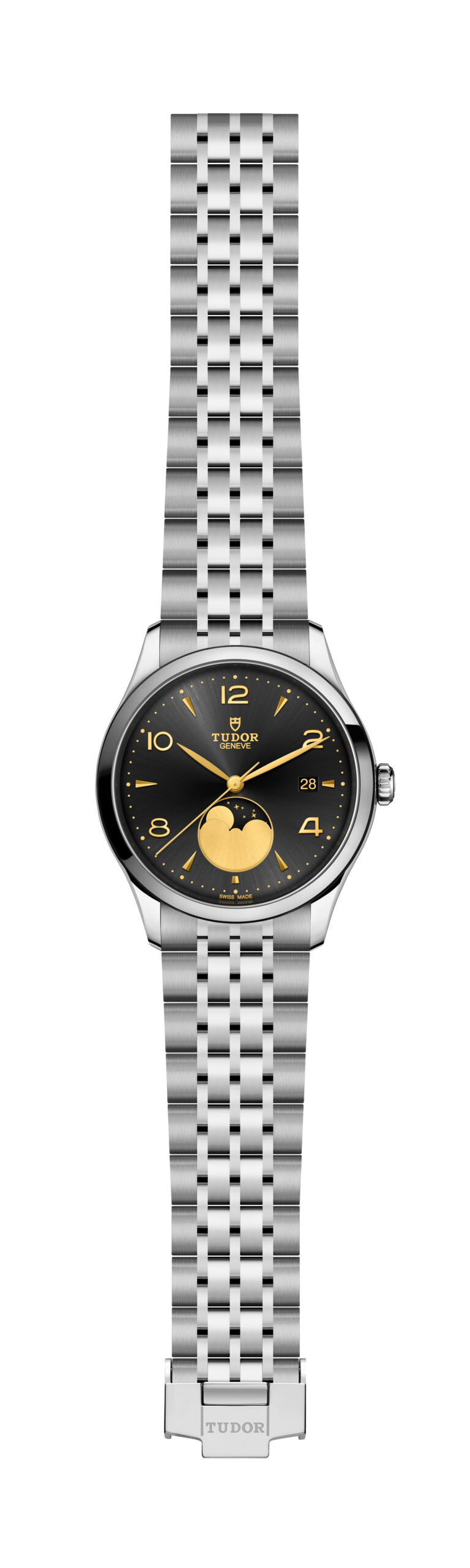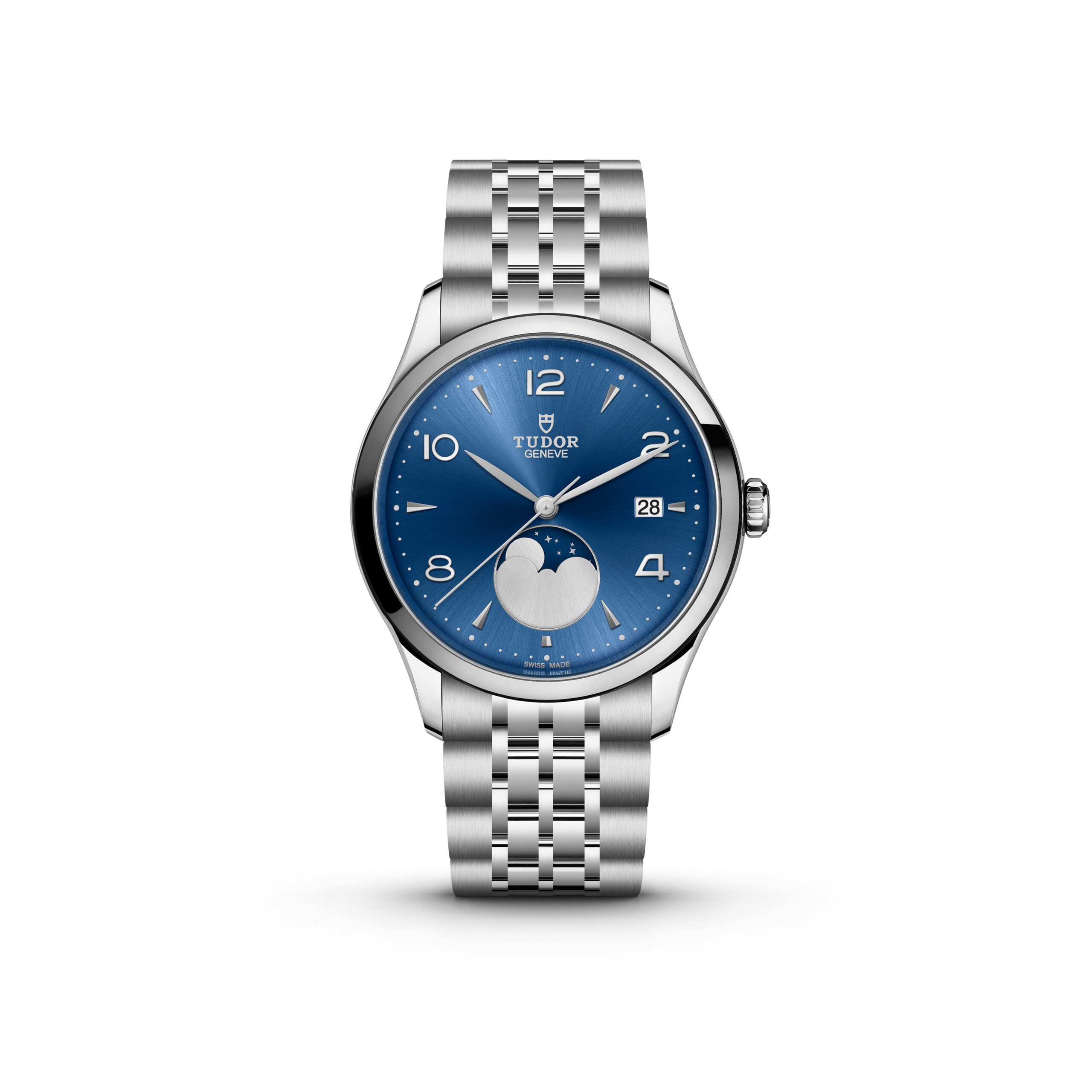The dials of the 1926 model are a fine example of TUDOR’s thorough attention to detail. Domed for a vintage touch, the delicate design points to TUDOR’s origins. These dials have applique even-numbered Arabic numerals between faceted arrow-shaped hour markers. The wealth of detail on the dials of the 1926 line creates a striking and intricate play of light that perfectly complements the sword-shaped hands with their matching colours, and the moon phase indicator is a novel touch that adds a bit of poetry to the watch.