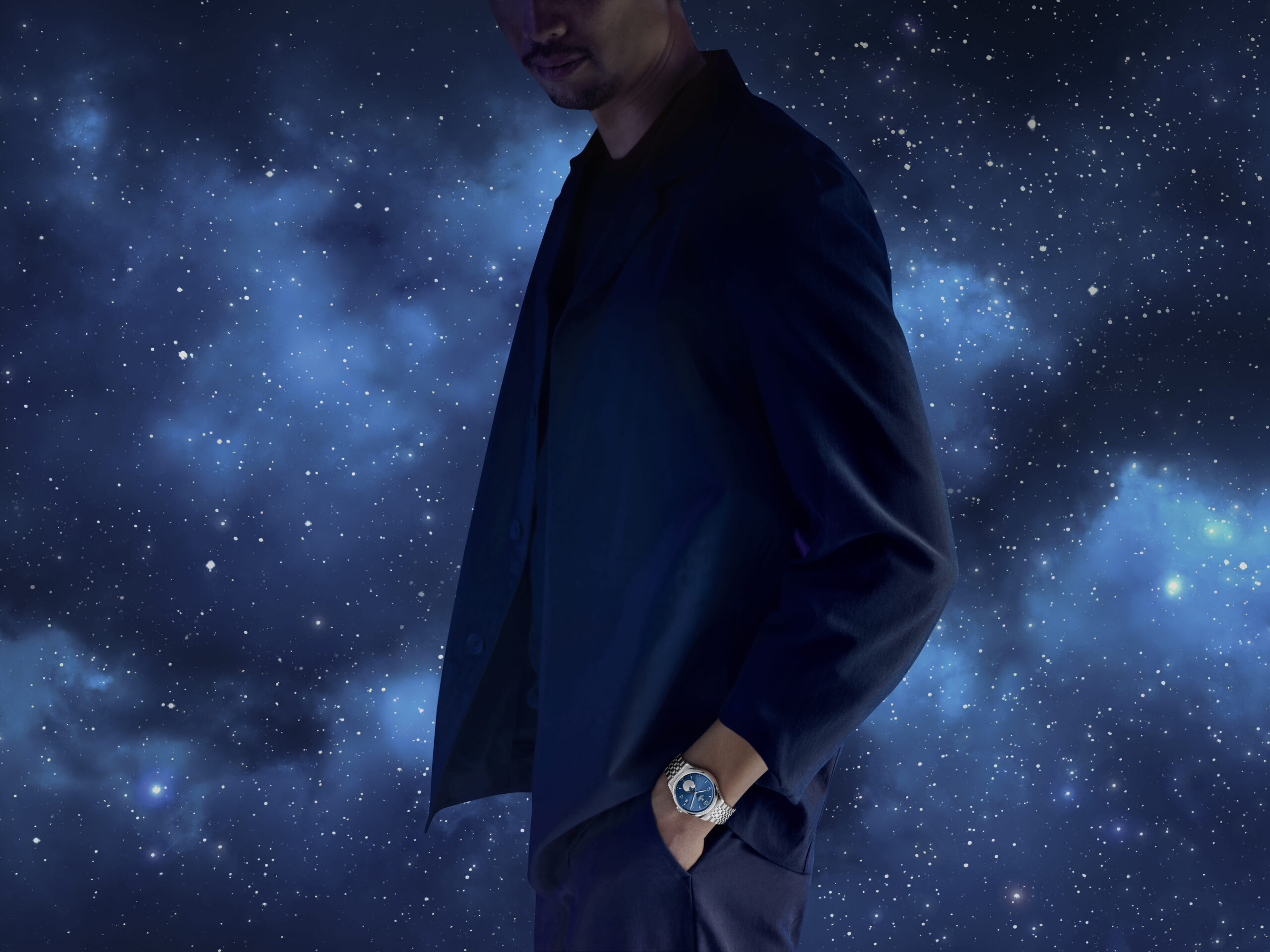 Working with TUDOR’s designers, Jay added his magic to the watch, and the result is as magnificent as a resplendent full moon lighting up the night sky. Framed by a perfectly polished bevel, the moon phase indicator appears at 6 o’clock on three brand new dials in 39mm stainless steel cases for the 1926: Blue, Black and Jay’s own, champagne-colour.