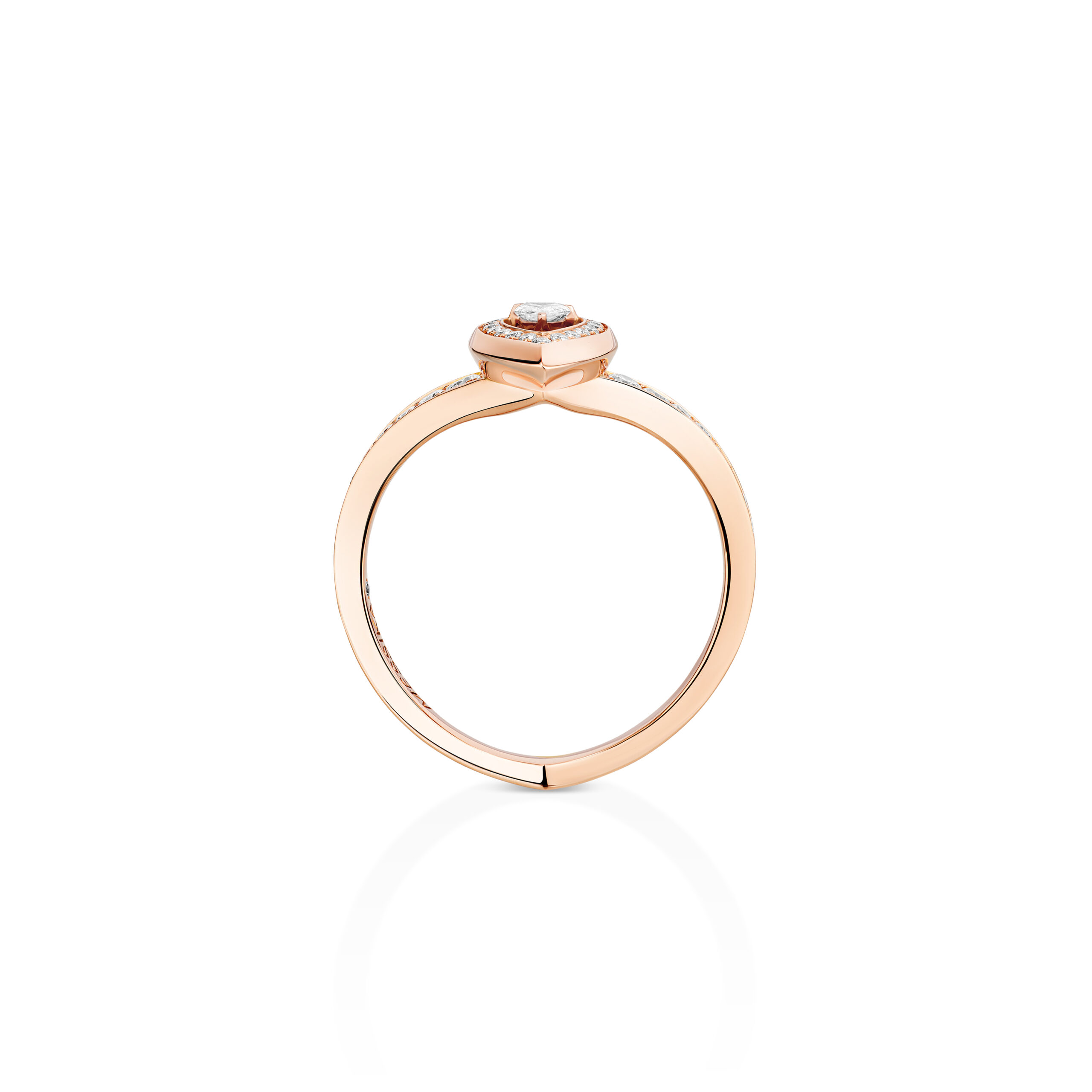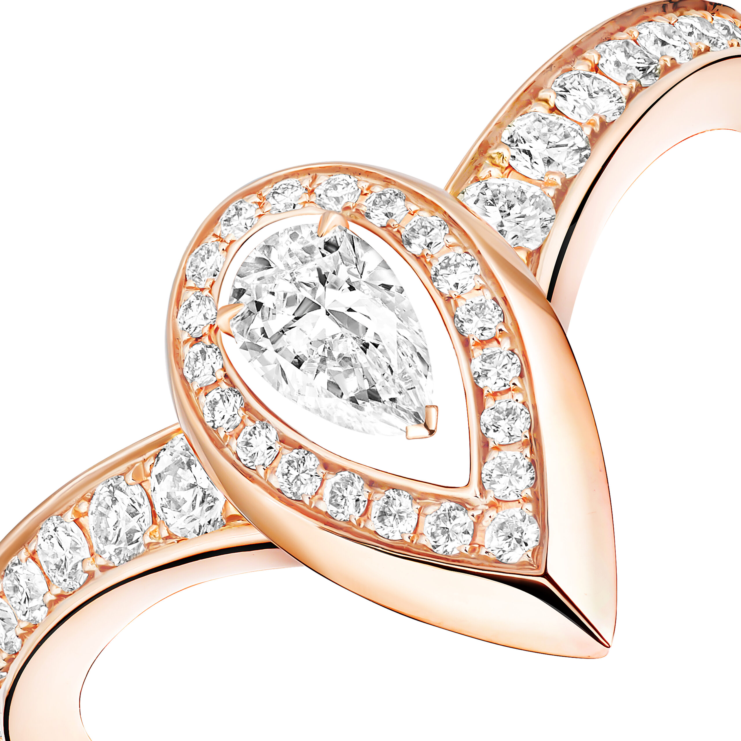A diamond ring with a strong personality that will appeal to those who want to make a bold statement. The Fiery luxury ring plays on contrasts, combining the softness and sensuality of the pear cut with a pink gold band with sharp contours. Whether you're celebrating a special moment in your life or treating yourself, this gold and diamond ring is as timeless as it is original, you'll never want to be without it!