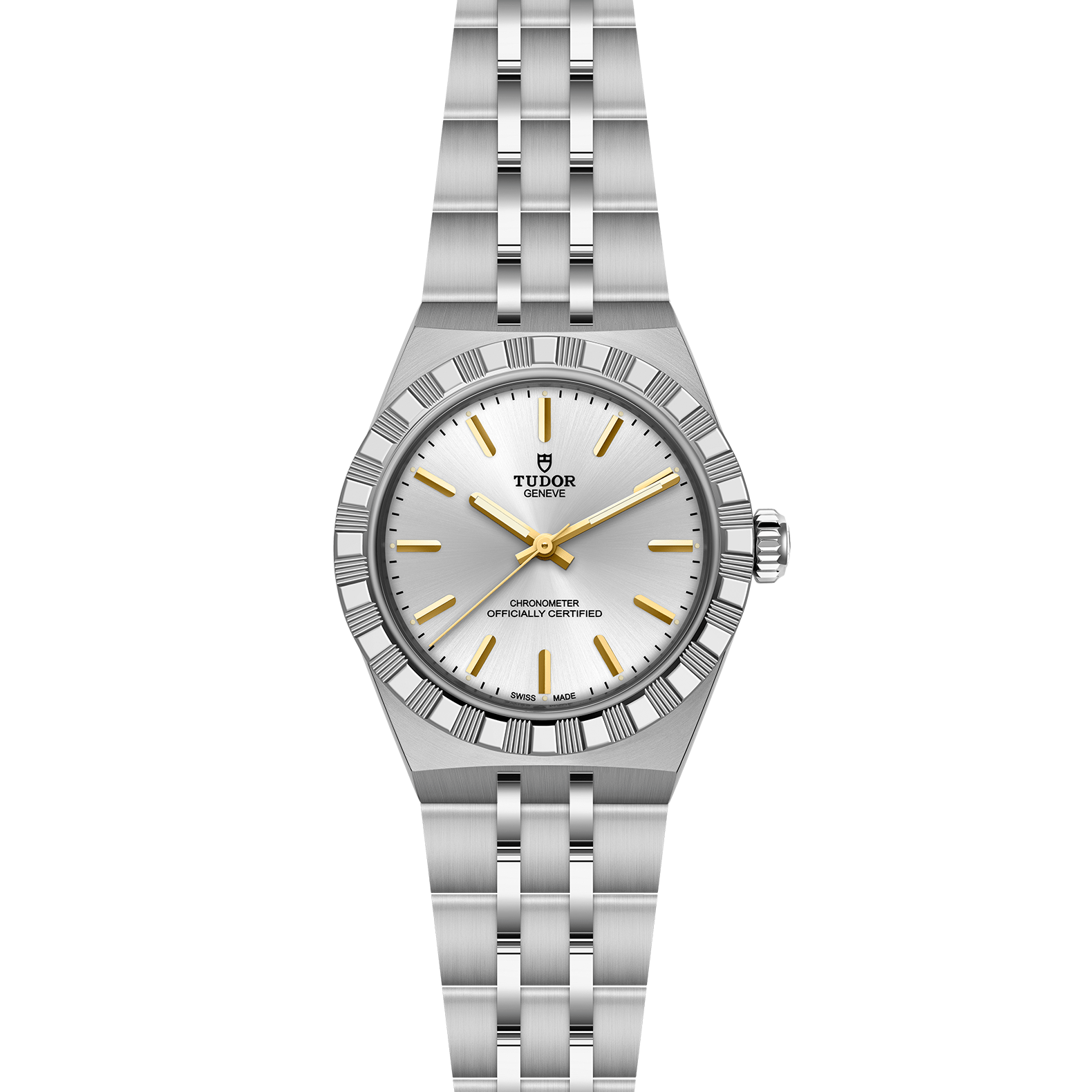 Stainless steel screw-down winding crown with the TUDOR logo in relief